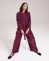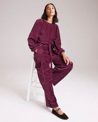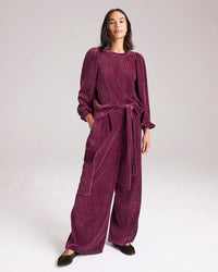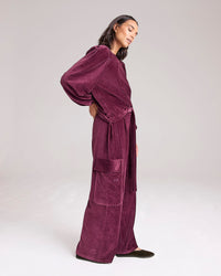 Crafted in the softest jersey velour cordroy, these wide leg palazo trousers are made in Portugal and designed for easy wear. With their lightweight and fluid feel, they also feature deep side pockets, an optional tie belt, and are finished with a subtle embroidered logo.